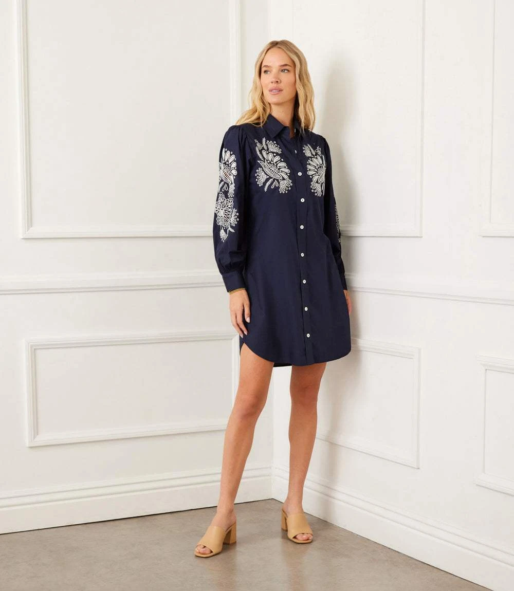 Featuring delicate embroidery that adds texture and charm, this dress is designed with voluminous puff sleeves, a crisp collar, and a button-down front for a polished finish. Made from soft cotton poplin, the lightweight fabric ensures comfort while maintaining its effortlessly chic appeal.