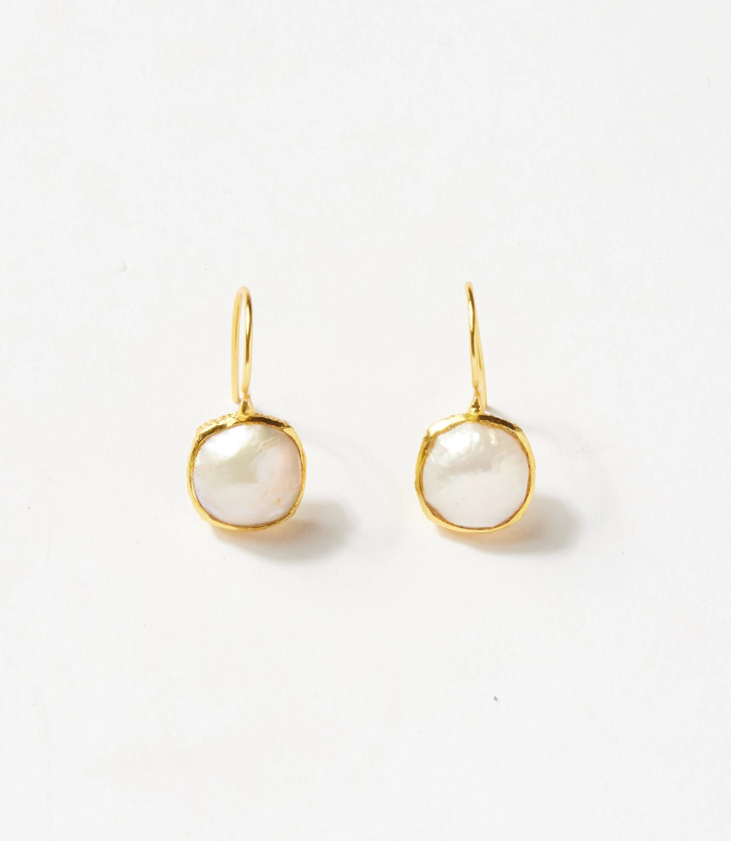Understated yet elegant, these earrings feature natural coin pearls set in gold-plated sterling silver. The organic shape of each pearl adds character, while the simple hook design offers effortless wear and timeless appeal.
