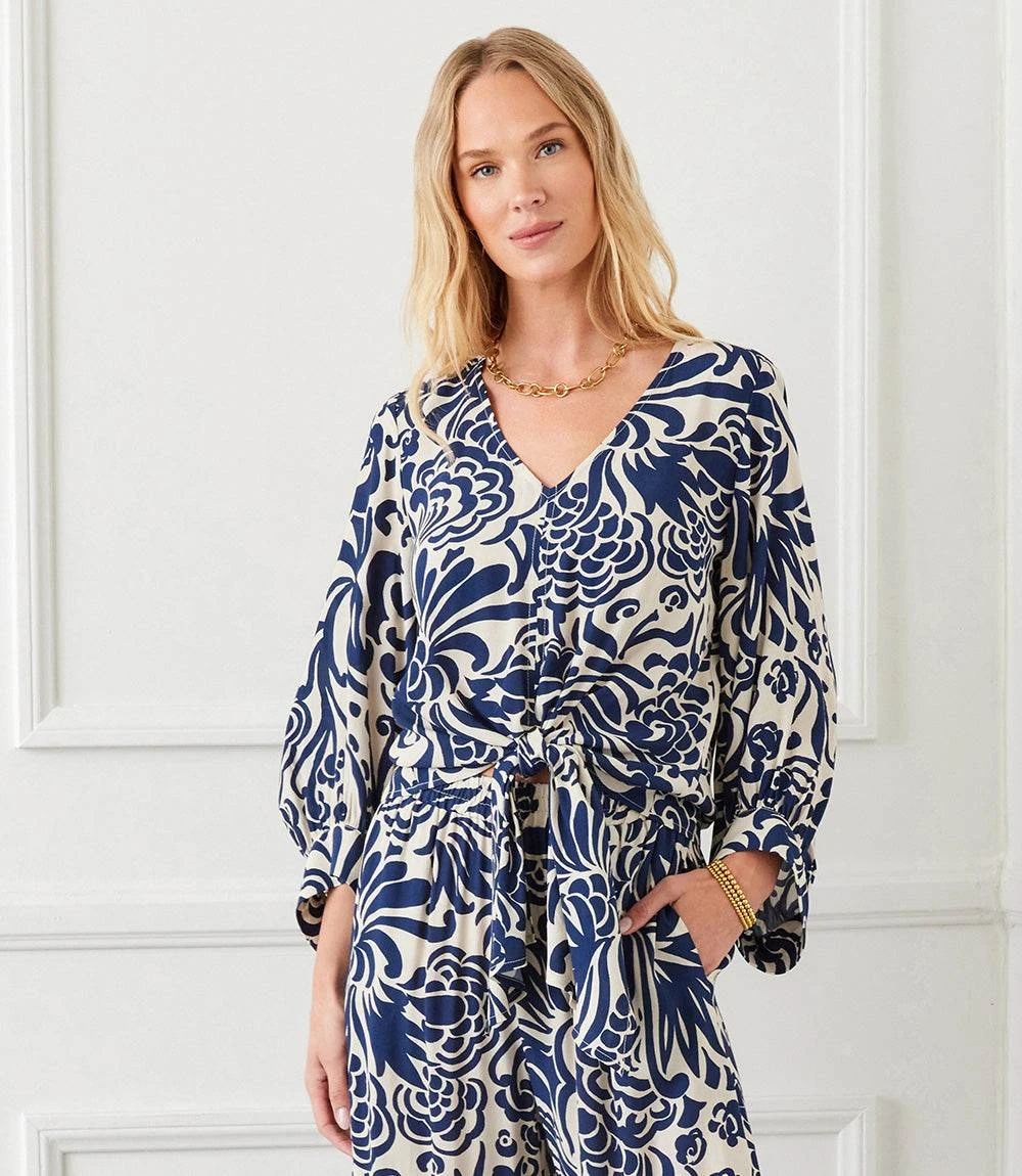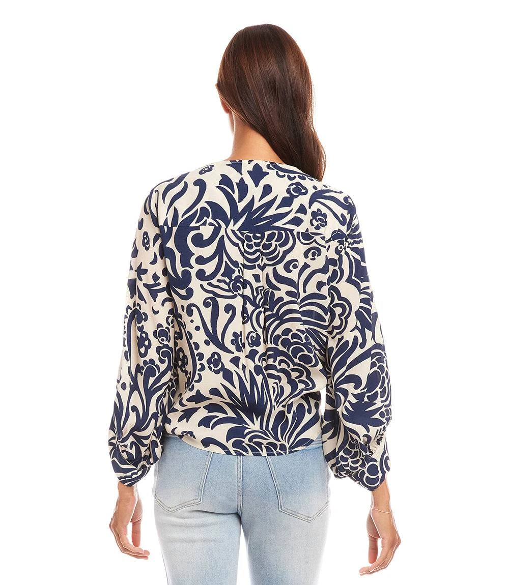 Crafted from luxurious crepe material and highlighted by a whimsy paisley print, this top flawlessly blends comfort and sophistication. Pair it with high-waisted jeans for an effortlessly chic look that works for both day and night.