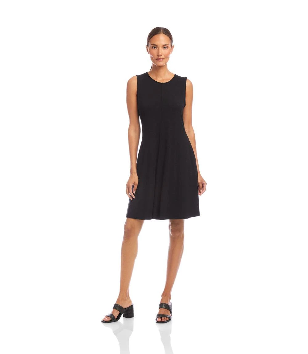Effortlessly flattering, this sleeveless fit-and-flare dress is crafted from a rayon spandex jersey that offers structure with a touch of stretch. Featuring front and back center seam detailing for subtle definition, it’s finished with convenient side pockets—perfect for everyday ease with a polished twist.