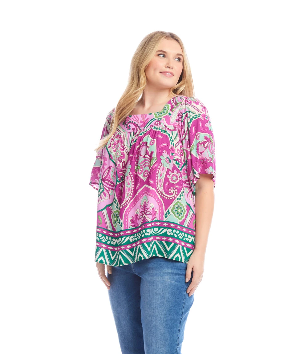 The structured square neckline offers a flattering, clean silhouette, while the dramatic flare sleeves add a bold, feminine touch. Crafted from soft, breathable fabric, this top provides comfort and style all day long. Whether you’re dressing it up for an evening out or pairing it with jeans for a casual look, this top is a versatile must-have in any wardrobe.